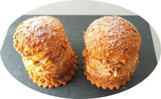 Mini tatin revisitée et son crémeux caramel sur son palet breton
