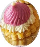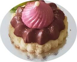 Bavarois chocolat cœur framboises sur un biscuit viennois