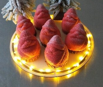 Boules de neige: Mousse vanille, insert fruits rouges, biscuit madeleine