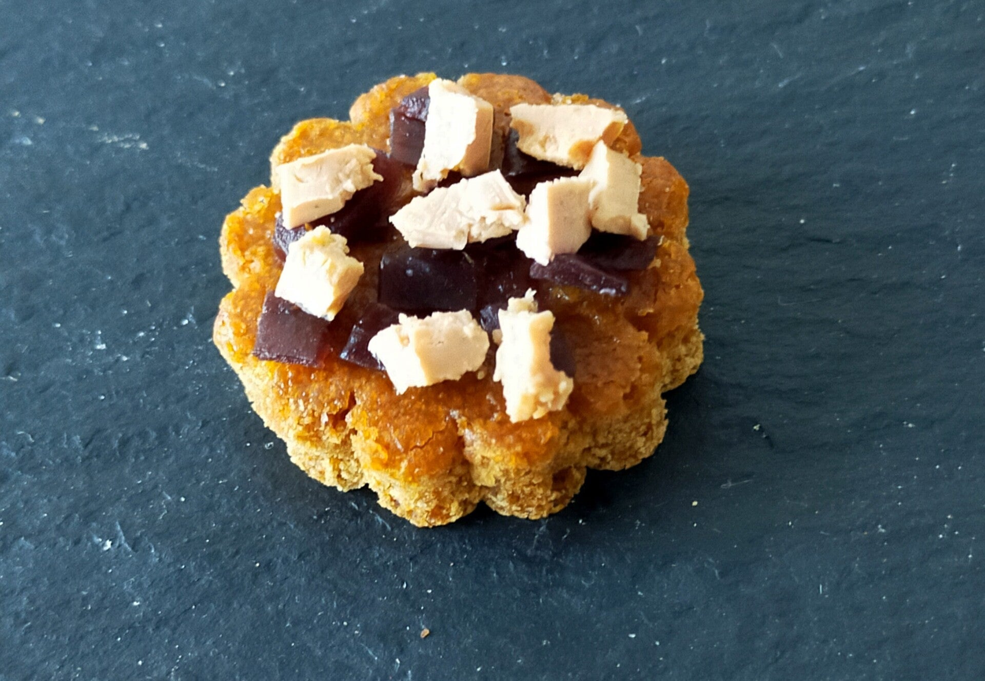 Panna cotta foie gras, pommes caramélisées sur son pain d'épices