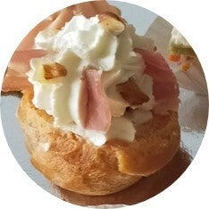 Crème fouettée, jambon sec, noix